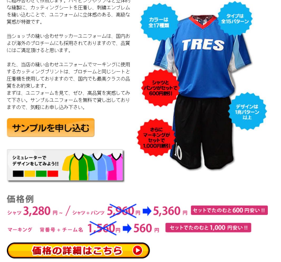 また、そのほかでも、こんな感じでほかのフットサルチームが選んでいますという意味で、サンプルへのリンクを載せておきますね。